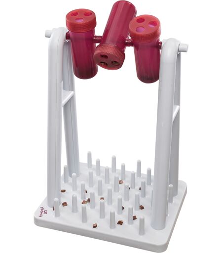 Et smart aktivitetsleketøy for katten din! Katter er nysgjerrige og lekne dyr som har det bra med å kunne oppdage og leke. Dette strategispillet fra Trixie inneholder 2 spill i 1. Enten kan du gjemme kattgodis under kjeglene på brettet, eller så skjuler du kattgodis i de hengende koppene og lar katten få ut godteriet selv. Det kan ta en stund før katten din kan leke av seg selv. En morsom måte å aktivere katten din både mentalt og fysisk på. Instruksjoner og tips og triks for hvordan du best kan trene katten din er inkludert! Spillet er laget av plast og det er mulig å vaske i oppvaskmaskinen. Undersiden er sklisikker takket være gummiføtter. Måle: 22x33x18 cm ...