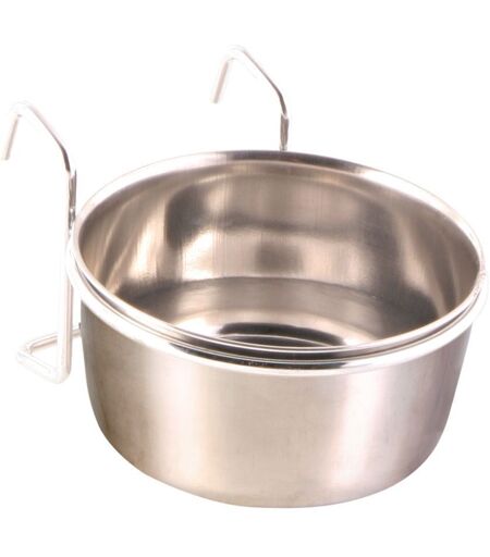 Trixie Matskål Rustfri med Holder 300 mlDenne matskålen er laget av rustfritt materiale som er lett å holde rent. Skålen kan enkelt henges på fugleburet ved hjelp av krokene. Husk å vaske skålen regelmessig, og sørg for at fuglen får drikke og spise samtidig hvis den vil det.Størrelse:300 ml ...
