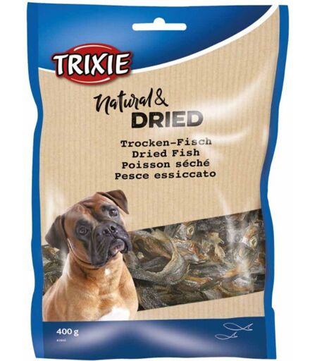 Trixie Tørket Fisk til hund 400 g – Naturlig hundegodteri! Dette er et velsmakende og naturlig hundegodteri som består av 100 % tørket fisk! Fisk er en favoritt blant mange hunder og en utmerket proteinkilde av høy kvalitet! 100 % tørket fisk (brisling) 400 g Husk at godbiter aldri skal være et alternativ til balansert kosthold – det skal alltid gis i tillegg som bonus eller belønning. Uansett hvor glad den firbente er i godbiter, er det du som eier som har ansvar for at dyret holder seg sunt og friskt. Se anbefalingene på pakken og husk at ingen dyr er like – tilpass inntaket etter kjæledyrets egne forutsetninger! ...
