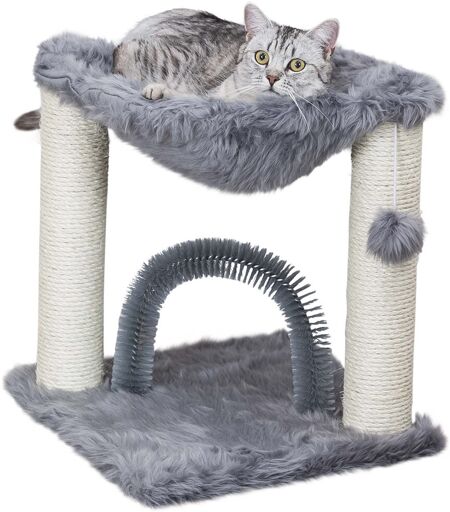 Trixie Baza skrapemøbel med ryggbørste - GråBaza er et litt mindre skrapemøbel fra Trixie. Baza har to søyler i sisal som skrapeflate, en koselig hengekøye og en komfortabel ryggbørste. På dette skrapemøblet kan katten din sove, klø og leke med ballen som henger på en av søylene. Et alt-i-ett hvilested! To søyler med sisal tauHengekøyeRyggbørsteSpille ball Bunnplate: 41 x 41 cm Høyde: 50 cm ...