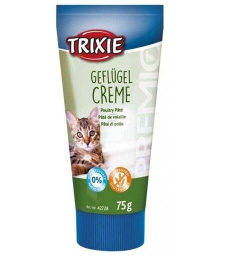 Trixie Premio Fuglepaté 75 g Unn katten noe ekstra godt i form av denne fuglepatéen. La katten spise rett fra tuben, eller legg den i matskålen. Vi tror at katten din vil elske denne deilige patéen! Trixie Premio Fuglepaté 75 g er glutenfri og inneholder ikke tilsatt sukker. Husk at godbiter aldri bør være et alternativ til et balansert kosthold – de skal kun gis i tillegg som bonus eller belønning. Uansett hvor glad din firbente venn er i godbiter, er det du som eier som er ansvarlig for at den holder seg frisk og sunn. Se anbefalingene på pakken og husk at alle dyr er forskjellige – tilpass inntaket etter hva som passer din venn best! ...