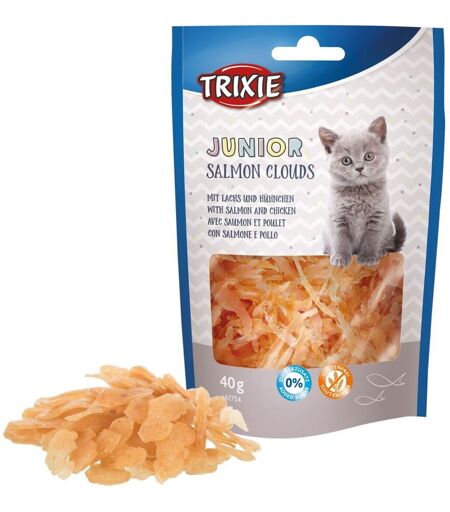 Lekre godbiter til kattunger med laks- og kyllingsmak! Ved å trene og leke med kattungen skaper du et sterkt bånd mellom dere. Under lek og trening kan det være bra å belønne med godbiter for å forsterke ønsket atferd. Trixie Junior Salmon Clouds er godbiter for kattunger med laks- og kyllingsmak. Husk at godbiter aldri bør være et alternativ til et balansert kosthold – de skal kun gis i tillegg som bonus eller belønning. Uansett hvor glad din firbente venn er i godbiter, er det du som eier som er ansvarlig for at den holder seg frisk og sunn. Se anbefalingene på pakken og husk at alle dyr er forskjellige – tilpass inntaket etter hva som passer din venn best! ...