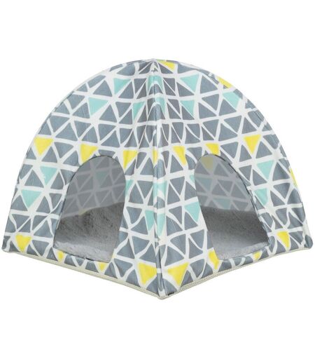 Telt til små kaniner og marsvin Et telt er et fint komplement til kaninens bur eller hage. Det gir kaninen en plass hvor den kan gjemme seg eller bare hvile. Dette teltet er laget av polyester og har en pute laget av kunstig lammeskinn som delvis beskytter mot den kalde bakken. Trekket på puten er avtakbart og kan vaskes på 30 graders finvask. Bunnen er også sklisikker slik at teltet står stødig. Teltet har to innganger og passer perfekt for å brukes i bur og hage samt utendørs når været tillater det. Størrelse: 37 x 35 x 37 cm – passer for mindre kaniner og marsvin ...