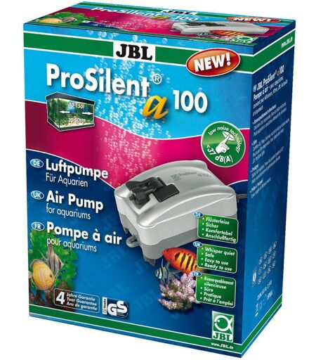 Stillegående luftpumpe for akvarier på 40–150 liter JBL ProSilent a100 er en luftpumpe av høy kvalitet, designet for å forbedre oksygentilførselen i både ferskvanns- og saltvannsakvarier med et volum mellom 40 og 150 liter.Viktige egenskaper: Effektiv oksygentilførsel: Med en luftkapasitet på 100 liter i timen og et lufttrykk på over 160 mbar sørger pumpen for optimal oksygenering av vannet. Energieffektiv: Forbruker kun 2,9 W, noe som bidrar til et lavt energiforbruk. Stille drift: Utstyrt med et lyddempende luftkammer, vibrasjonsdempende silikonføtter og en forsterket dekselvegg for minimalt støynivå under drift. Justerbar luftutgang: Mulighet for å justere luftstrømmen for å tilpasse oksygentilførselen til akvariets behov. Sikkerhet: Inkluderer en tilbakeslagsventil som hindrer vannet i å renne tilbake i pumpen ved strømbrudd eller lignende situasjoner. Tekniske spesifikasjoner: Luftkapasitet: 100 l/h Lufttrykk: >160 mbar Energiforbruk: 2,9 W Anbefalt akvariumstørrelse: 40–150 liter Medfølgende tilbehør: 2 m lufteslange, tilbakeslagsventil og oksygenstein ...