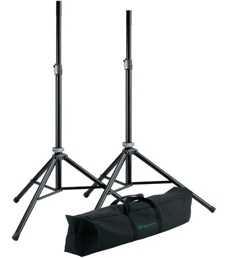 K & M 21449 Speaker Stand Pack tilbyr alt som trengs av gigging DJ eller live arena. De to stativene er laget av en lett aluminiumsramme for enkel transportbarhet på veien. 21449's trykknapp og låseskruer holder stativets høyde godt på plass når du har oppnådd ønsket høyde. Disse stativene har trekkbaser for stabilitet på scene mens gummifotkappen gir grepet på ujevne overflater. 21449s 2-delt design gjør at den raskt kan brettes i en kompakt form. Denne stativpakken inneholder en nylon gig-pose for enkel mobilitet. ...