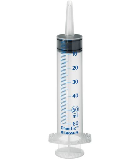 Omnifix sprøyte 50 ml kateteransats, 100 stk Omnifix sprøyte 50/60 ml med kateteransats i klar plast. Sprøyte med godt synlig gradering med graderingsintervall 1ml. Sprøytekammer og stempel i polypropylen. Isopren stempelring. Silikonert for jevn stempelføring. Med stempelstopper for å hindre at stempel dras helt ut. ...