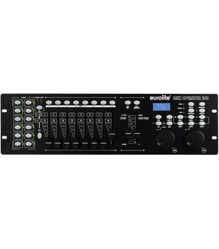 Ta belysningen et hakk. Eurolite Operator 240 20 Channel DMX Controller tilbyr profesjonelle ytelsesegenskaper i et robust skall noe som gjør den perfekt for arenaer i alle størrelser. Den integrerte bakgrunnsbelyste LED-skjermen og åtte fadere gjør den bemerkelsesverdig enkel å bruke uten å ofre noen funksjonalitet. Med 30 programmerbare sekvenser hver med åtte scener og muligheten til å overføre opptil 240 DMX-kanaler begynner du å forstå hvor kraftig denne enheten egentlig er. Joggehjulene for panorering / tilt er en luksuriøs funksjon som gjør livet enkelt. USB-porten er også en praktisk funksjon slik at du kan lagre og overføre all programdata fra PC-en din og også enkelt oppdatere firmware. Kraftig ytelse i et robust kompakt skall med Operator 240. ...