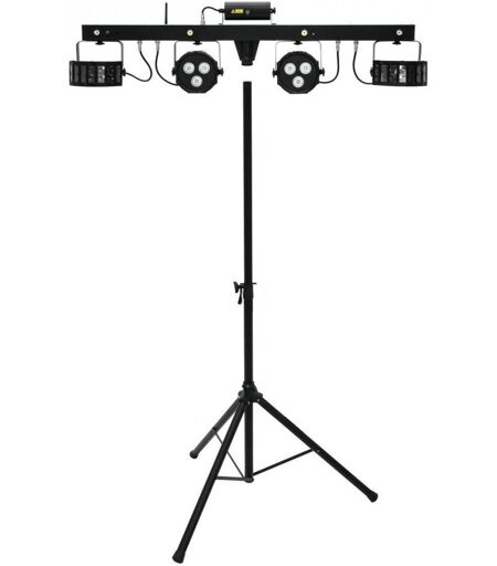 Eurolite KLS LED-sett med lasereffektstang med stativ er en alt-i-ett-løsning for å belyse showet ditt. Den bruker en laser to roterende LED-derbyer og spots samt strobe-LED-er du har alt du trenger for å legge til spenning til settet ditt. Du vil være klar for enhver situasjon siden systemet har 37 integrerte showprogrammer som bruker alle fire effektenhetene. Disse kan brukes i enten auto- eller musikkmodus for å passe situasjonens ønsker og behov. Den kan også integreres i en større lysrigg ved å bruke DMX-kompatibilitet. Lasereffektstangen leveres ferdigmontert i en letttransportert pose noe som gjør monteringen av enheten enkel. ...