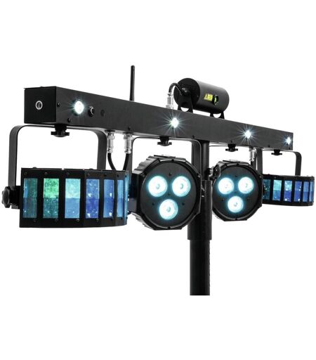 Eurolite KLS LED Set Laser Effect Bar er en allsidig lys og laser multi-effekt bar. Bestående av en laser to roterende LED-derbyer og spots samt strobe-LEDS har du alt du trenger for å injisere spenning i settet ditt. Du vil være klar for enhver situasjon siden systemet har 37 integrerte showprogrammer som bruker alle fire effektenhetene. Disse kan brukes i enten auto- eller musikkmodus for å passe situasjonens ønsker og behov. Lasereffektstangen kommer ferdigmontert i en lett transporterbar bag. Dette gjør monteringen av enheten rask enkel og intuitiv. ...