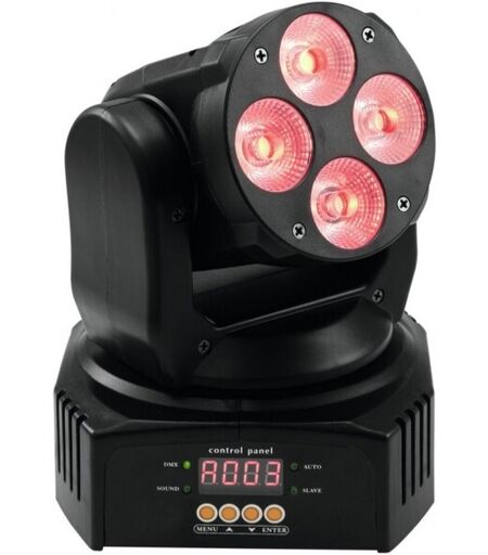 Eurolite TMH-46 Moving Head LED Wash Light er ideell for små band mobile DJ-er soloartister og bryllupsfester. Denne minien moving head er bygget for å være lett og bærbar og har en bemerkelsesverdig lyseffekt med fire 10 W LED-lamper med RGBAW- og UV-fargemiksing. Den kan produsere rike fiolette magenta og oransje toner samt vakre pastellfarger. Til tross for sin lille størrelse tilbyr TMH-46 profesjonelle kontrollalternativer inkludert 16- eller 18-kanals DMX interne programmer og lydaktivering. 540-graders panorering og 220-graders tilt med 16-biters oppløsning sikrer presis posisjonering. Ytterligere funksjoner inkluderer justerbare bevegelsesmakroer elektronisk dimming og en stroboskopeffekt noe som gir allsidighet for ethvert arrangement. Med en strålevinkel på 24 grader og flimmerfri ytelse er TMH-46 perfekt for scenebelysning og bakgrunnseffekter. Den er enkel å transportere og sette opp noe som gjør den til et praktisk valg for entertainere på farten. ...