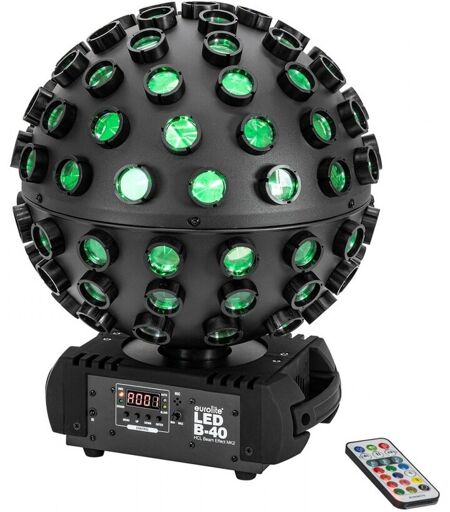 Eurolite LED B-40 MKII Laser Beam Effect er et kraftig disco ball-inspirert LED-stråleeffektlys. Denne stråleeffekten har fem kraftige 10 W RGBWA/UV LED-er for levende og dynamisk belysning. Med individuelt kontrollerbare segmenter og 8 integrerte showprogrammer tilbyr dette allsidige lyset uendelige muligheter for å skape fantastiske bilder. Betjen lyset i 3 12 eller 23 kanaler med DMX og velg fra en rekke kontrollalternativer som IR-fjernkontroll frittstående lydaktiv DMX en rekke trådløse DMX-områder eller master/slave-funksjonen . Denne fleksibiliteten sikrer optimal ytelse uansett oppsett. Slipp kreativiteten løs med flerstråle- og strobeeffekter justerbar rotasjonshastighet elektronisk dimmer og trinnløs fargeblanding. Den monokrome 4-sifrede 7-segments LED-skjermen gir enkel navigering og tilpasning. ...