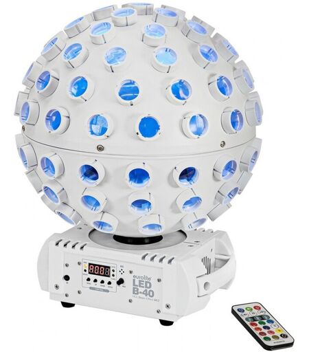Eurolite LED B-40 MKII Laser Beam Effect er et kraftig disco ball-inspirert LED-stråleeffektlys. Denne stråleeffekten har fem kraftige 10 W RGBWA/UV LED-er for levende og dynamisk belysning. Med individuelt kontrollerbare segmenter og 8 integrerte showprogrammer tilbyr dette allsidige lyset uendelige muligheter for å skape imponerende visuelle bilder. Betjen lyset i 3 12 eller 23 kanaler med DMX og velg fra en rekke kontrollalternativer som IR-fjernkontroll frittstående lydaktiv DMX en rekke trådløse DMX-områder eller master/slave-funksjonen . Denne fleksibiliteten sikrer optimal ytelse uansett oppsett. Slipp kreativiteten løs med multistråle- og strobeeffekter justerbar rotasjonshastighet elektronisk dimmer og trinnløs fargeblanding. Den monokrome 4-sifrede 7-segments LED-skjermen gir enkel navigering og tilpasning. ...