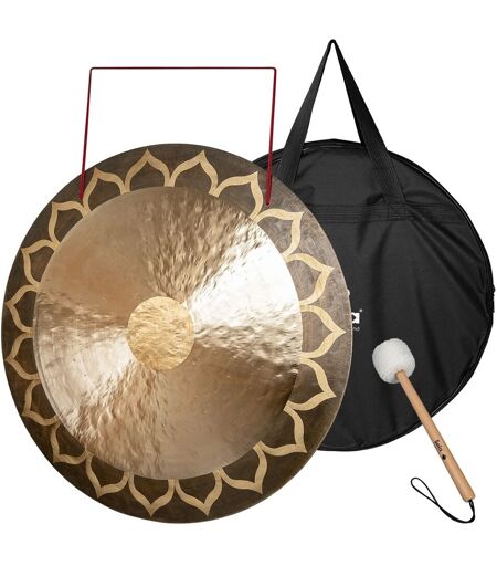 Sela 36" Wind Gong Lotus er ideell for lydterapeuter meditasjonsutøvere og perkusjonister som trenger kraftige stemningsfulle toner. Den store diameteren på 36" gir en fyldig resonans som varer lenge perfekt for å skape oppslukende lydlandskaper eller legge til dramatiske aksenter i orkestersammensetninger. Denne gongen er håndlaget i Kina av en spesiell bronselegering og er formet nesten flat med en kant som ikke buer bakover noe som gir mulighet for et bredt spekter av tonale responser avhengig av hvor og hvordan den slås an. Et detaljert lotusmotiv dekorerer ytterkanten og blander åndelig symbolikk med kunstnerisk stil. Hver gongong leveres med en lønnehåndtert klubbe med fløyelsbelagt hode som gir et mykt og dempet anslag. En bæreveske med glidelås gjør oppbevaring og transport enkel. Dette oppsettet gjør det enkelt å integrere gongen i terapitimer forestillingslokaler eller studiomiljøer. ...