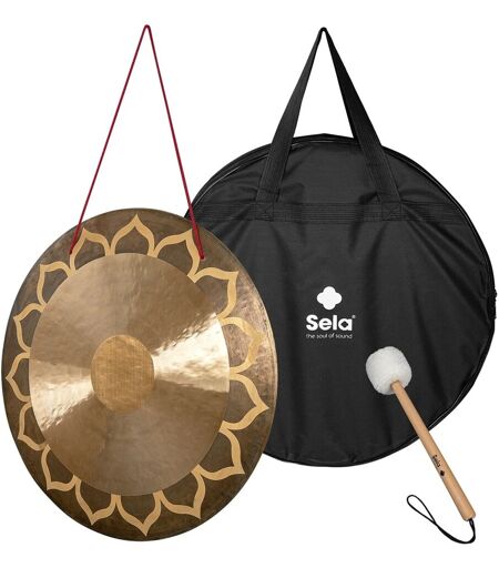 Sela 24" Wind Gong Lotus er ideell for meditasjonsøkter lydterapi og perkusjonister som er ute etter dype vedvarende toner. Denne flate gongen er håndlaget i Kina av en spesiell bronselegering og har en varm lagdelt resonans som tilpasser seg etter hvordan og hvor den blir slått på. Overflaten har varierende teksturer og overflatebehandlinger noe som gir den et slående utseende og en klanglig kompleksitet.Det iøynefallende designelementet er den etsede lotusblomsten som er rik på spirituell symbolikk noe som gjør denne gongen ikke bare funksjonell men også visuelt symbolsk. Hver gongong leveres med en lønnehåndtert klubbe kledd i fløyel for et mykt anslag samt en bæreveske med glidelås for transport og oppbevaring. Diameteren på 60 cm og vekten på 6 kg gir et balansert forhold mellom størrelse og lyd noe som gjør den praktisk uten at det går på bekostning av den akustiske dybden. ...