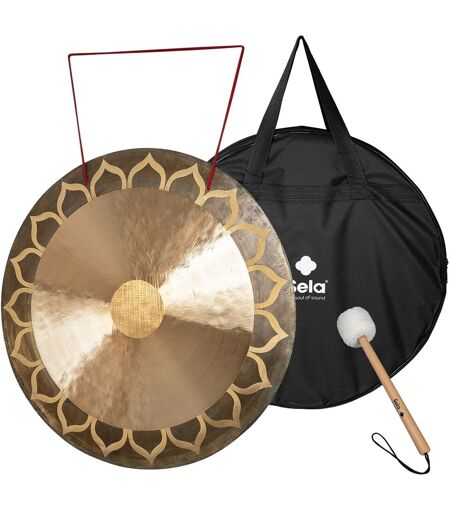 Sela 32" Wind Gong Lotus er ideell for lydterapeuter meditasjonsledere og perkusjonister som ønsker dype resonante toner med et spirituelt preg. Den er håndlaget i Kina av en unik bronselegering og den flate formen og den brede 32" overflaten gir et bredt spekter av klangmuligheter avhengig av hvordan og hvor den spilles. Dette gjør den allsidig nok til både introspektive lydbad og dramatiske orkestereffekter.Visuelt skiller den seg ut med en glitrende matt gullfinish og et fint detaljert lotusmotiv som symboliserer renhet og visdom etset inn i ytterkanten. Utseendet alene gir en beroligende tilstedeværelse i ethvert rom eller studio. En polstret klubbe med håndtak i lønn og fløyelsbelagt hode følger med sammen med en slitesterk bæreveske med glidelås for sikker transport og oppbevaring. ...