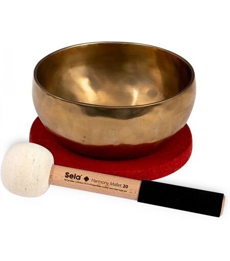 Sela Harmony Singing bowl 26cm er en elegant men høykvalitets syngebolle laget av Sela percussion. Den har en rekke sfæriske klanger med et bredt og harmonisk overtonespekter. Den 26 cm store Sela Harmony Singing bowl vil garantert gi et unikt preg av ro i ethvert miljø. Sela Harmony Singing Bowl kan spilles på med det medfølgende klassiske filtkøllehodet eller køllehåndtaket for å skape et mildt utvalg av beroligende lyder mens den medfølgende filtringen hever bollen slik at den vibrerer optimalt. Sela har en glitrende matt overflate med en stilig gravering og sangskålen ser like høykvalitets ut som den høres ut. Settet leveres komplett med en bomullspose med luksuriøst rødt velurfôr for enkel beskyttelse og oppbevaring samt en klassisk filtkølle og et håndtak i friksjonstre - rett og slett en funksjon i seg selv. Denne imponerende syngebollen er ideell for ulike bruksområder som meditasjon syngebollterapi og yoga og den vil garantert gi en beroligende opplevelse. ...