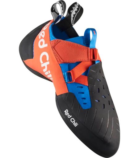 Unisex' Voltage X fra Red Chilli er en høytytende klatresko konstruert for teknisk avansert buldring og sportsklatring. Skoen er utstyrt med en RC-TENSION S-mellomsåle, som kombinerer et aggressivt spenningssystem med en fleksibel og følsom struktur for optimal kontakt med underlaget. Den delte sålekonstruksjonen med Vibram XS Grip-gummi gir utmerket friksjon og smidighet på varierte overflater. Foran har skoen en sjenerøst dimensjonert tåpatch i gummi for effektiv tåhekte, mens hælen er anatomisk formet og gummibelagt for stabil kraftoverføring ved hælhekte. Randen er relativt bred, noe som bidrar til en stabil og sikker passform uten å gå på kompromiss med komforten. Snøresystemet består av en raskjusterende VCR-rem, som muliggjør presis tilpasning av passformen med et enkelt grep. Skoens asymmetriske og aggressive form er optimalisert for presisjon og kraft i bratte og tekniske problemer. RC-TENSION S-mellomsåle som kombinerer et aggressivt spenningssystem med fleksibilitet og følsomhet Delt såle i Vibram XS Grip-gummi for optimalt grep og smidighet Stor tåpatch i gummi for effektiv tåhekte og økt kontroll Anatomisk formet og gummibelagt hæl for stabil kraftoverføring ved hælhekte Relativt bred rand for en sikker passform som passer flere fottyper Aggressiv og asymmetrisk form for høy presisjon i tekniske og bratte momenter Raskjusterende VCR-rem for enkel og presis tilpasning av passformen ...