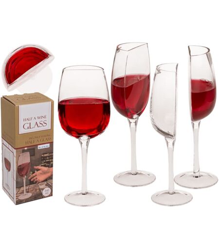 «Jeg tar bare et halvt glass vin i kveld.»Med dette geniale vinglasset sier du akkurat det – og holder ord! Glasset ser nemlig ut som et helt glass fra siden, men er skåret rett i to. En perfekt balanse mellom moderasjon og misvisende inntrykk. Et halvt vinglass er den ideelle gaven til vinelskere med selvironi, eller som morsom rekvisitt på festbordet. Det rommer ca. 200 ml, og passer utmerket til både rødt, hvitt og latter. Like flott som unnskyldning for et glass ekstra som det er som samtalestarter. Perfekt til bursdager, julebord, vinkvelder og gaveutveksling der noen sier de «bare skal ha litt». ...