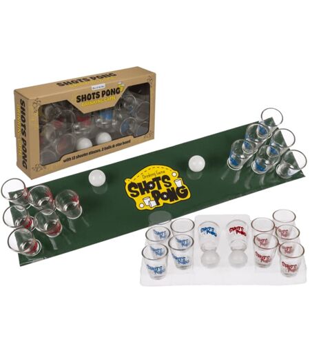 Shots Pong er en underholdende vri på det klassiske beer pong-spillet, tilpasset shotteglass. Settet inkluderer 12 glass i to farger, to baller og en spillematte som fungerer som brett for oppsettet. Perfekt til utdrikningslag, hjemmefest eller temafest hvor dere ønsker en leken og sosial aktivitet. Spillere konkurrerer ved å treffe motstanderens glass – og taperen må tømme glasset. ...