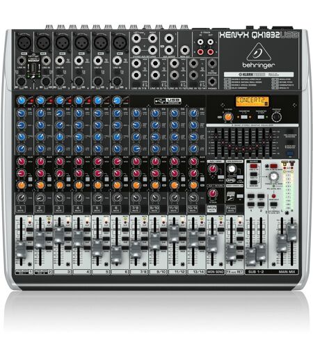 Behringer QX1832USB er en premium 18-Input 3/2-buss Mikser med XENYX Mic Preamper & Kompressorer KLARK TEKNIK Multi-FX Prosessor Trådløst Alternativ og evne til å fungere som en USB audio interface. ...