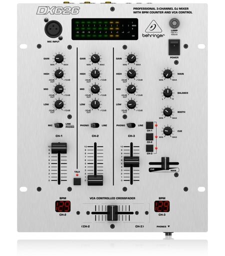 Behringer DX626 Pro DJ Mikser er en 3-kanals mikser konstruert for å levere en jevn ytelse med optimal kontroll. En intuitiv dobbel BPM teller hjelper brukere å synkronisere spor for en sømløs overgang mellom et spor og det neste. Ultraglide fadere gir opptil 500 000 sykluser og presise nivåinnstillinger mens VCA-kontrollert crossfader sikrer pålitelighet. Med en dedikert mikrofoninngang og talkover funksjon prioriteres vokalene i lyden da de overstiger volumet av musikken. En 3-bånds EQ lar brukerne forme sin lyd med 15 dB kutte eller øke på lav midt og høy frekvens sentre. ...
