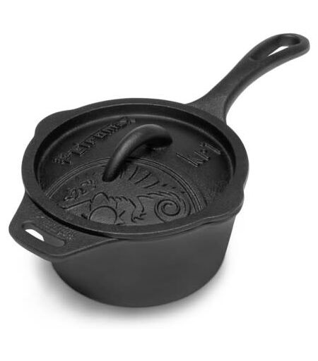 Cast-Iron Saucepan with lid Kr1 fra Petromax er en støpejernsgryte med lokk som kan brukes både innendørs og utendørs over åpen ild. ...