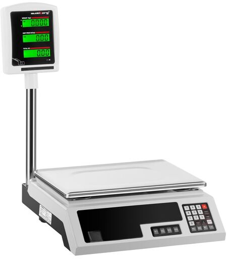 Butikkvekt SBS-PW-301CE kan veie gjenstander opptil 30 kg med en nøyaktighet på 1 g. Vekten har alle funksjonene du trenger og som kan optimere arbeidsprosesser. Steinberg System-serien inkluderer kvalitetsvekter for alle formål. Veieresultatet vises umiddelbart på displayet. Hvis du nullstiller, reagerer displayet også umiddelbart. Butikkvekten har dobbel display øverst i baren. På denne kan veieresultatet, enhetsprisen og totalprisen avleses. De to skjermene har bakgrunnsbelysning slik at du kan jobbe selv under dårlige lysforhold. Denne elektroniske butikkvekten er utstyrt med ulike praktiske funksjoner som du kan velge på det oversiktlige kontrollpanelet. Butikkvekten er utstyrt med et innebygd batteri slik at den kan brukes uten ekstern strømkilde. Du kan bruke vekten uten problemer mens den lader. Når vekten går på batteristrøm og du ikke bruker den, går den over til energisparemodus etter 5,5 sekunder. Vekten har innebygd batteriindikator. Når batteriet er lavt, vises et grafisk symbol på displayet som informerer deg om at det er på tide å lade. Prisvekten er også utstyrt med en funksjon som varsler ved overbelastning. Når maksvekten på 30 kg overskrides, blir du informert via symbolet OL. Butikkvekten er utstyrt med en ekstra stor, avtagbar vektplate i rustfritt stål som måler 34 x 23 cm. I utformingen av butikkvekten SBS-PW-301CE er det lagt vekt på en plassbesparende design. De sklisikre gummiføttene sikrer et stabilt stativ og beskytter arbeidsbordet mot riper. N.B. Denne vekten er ikke godkjent for kjøp og salg. Da det ikke er mulig å få det aktuelle godkjenningsbeviset, beregnes vekten kun som en internkontrollvekt. ...