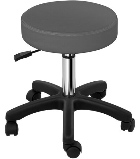 Det er mange karrierer og situasjoner der du må sitte mye i jobben din. Enten det er i en frisør- eller skjønnhetssalong, kontor eller legekontor, finner du en fleksibel, men likevel komfortabel arbeidsstol i AVERSA GREY-modellen fra Physa. Stolens høye kvalitet og holdbarhet er noen av de mange praktiske detaljene som skiller den ut. Kjernen til AVERSA GREY arbeidskrakken er setet, med en diameter på 34 centimeter. Håndverk og materialene møter de høyeste standarder for kvalitet. Den 7,5 cm tykke skumgummipolstringen er både myk og formfast, og tillater deg å sitte komfortabelt på krakken over lengre perioder. Skumgummipolstringen er nøyaktig formet og dekket med lærimitasjon som dekker skumgummien perfekt, helt uten rynker. Trekket i lærimitasjon er strukket forsiktig over en setestruktur av kryssfiner i høy kvalitet, noe som gir setet nødvendig stabilitet. Doble sømmer på kantene av setet gir det ekstra styrke. AVERSA arbeidskrakk tilbyr maksimal fleksibilitet takket være lettgående hjul, som beveger seg stille og smidig over gulvet. Basen med fem utbyttbare hjul gir god håndtering. Setet roterer 360 grader og gir ubegrenset bevegelighet for alle oppgaver. Avhengig av arbeidsplassen eller kunden kan arbeidskrakken justeres til en setehøyde på mellom 45 og 58 cm for å beskytte ryggen din. Det er en brukervennlig spak på setet for rask og enkel justering av riktig høyde med en pneumatisk pumpe. Den pneumatiske fjæren gir også en veldig komfortabel og polstret seteposisjon. Plastikken og stålet som brukes er enkle å rengjøre. Setets PVD-trekk er støv- og vannavstøtende, noe som holder det rent under arbeid. Dette betyr at du kan bruke væske eller pulverholdige produkter uten å bekymre deg for å skade arbeidsplassen. Til tross for kompakt og stilig design er arbeidskrakken veldig stabil og kan tåle opptil 150 kilo uten problem. Komponentene av polert stål og dens grå utføring gir krakken en tidløs eleganse som visuelt passer inn i alle omgivelser. ...