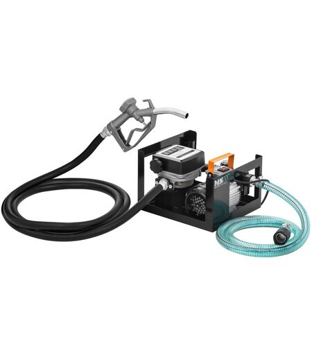 Denne drivstoffpumpen MSW-OP60S er pålitelig og presis når det kommer til å overføre eller fjerne diesel eller olje fra en tank. Oljepumpen kan brukes på for eksempel havnen, verkstedet eller bensinstasjonen. Den elektriske drivstoffpumpen leveres med tilhørende slange og dyse, så du kan bruke den med en gang. Denne dieselpumpen med 600 watts motor har en pumpeevne på 60 l/min sånn at du kan fylle diesel raskt. Pumpen kan også benyttes til å overføre olje fra en tank til en annen. Oljepumpen er selvsugende som gjør den svært brukervennlig. Pumpehøyden er 4 meter og dermed kan større tanker også tømmes. Selve pumpen blir ikke ødelagt om den fortsetter å kjøre når tanken er tømt. Pumpen er montert på en ramme så den kan bli forflyttet. Enheten er levert med de riktige slangene for tømming og overføring. Du kan bruke dysen til å regulere overføringen og overvåke via telleren. Den presise telleren er utstyrt med to display. Den doble telleren måler nøyaktig mengde av olje og diesel som blir vist på det firesifrede displayet. Samtidig kan det samlede forbruket avleses med 8 siffer. Det samlede forbruket kan ikke nullstilles. Slangen som følger med drivstoffpumpen er utstyrt med et nettfilter som effektivt filtrerer urenheter så de ikke havner i tanken. Om en blokade oppstår, sørger en omløpsventil for å unngå overoppheting. Siden enheten er av kapslingsklasse IP55 er den også sikker i bruk. ...