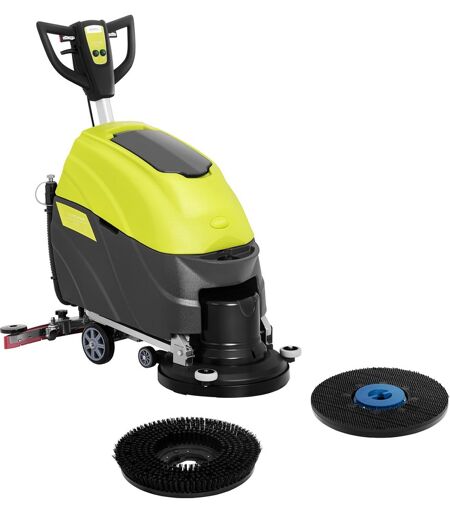 Med gulvvaskemaskinen TOPCLEAN 1600 kan du rengjøre store områder, også der hvor du ikke har en stikkontakt. Gulvvaskmaskinen har en driftstid på 2timer når den er oppladet. Maskinen gir gulvene dine en nydelig glans, uansett om det er hos en bilforhandler, i en restaurant eller et museum. Gulvvaskmaskinen overtaler med en effekt på 1600 W. Ved en ytelse på 1200 W har børstene en rotasjonshasithet på 155 omdr./min, og med 400 W blir vaskerestene grundig fjernet. Takket være den høye effekten som passer til de forskjellige funksjonene, er det mulig å rengjøre et gulvareal på 1.600 m Samtidig er hjulene så elastiske at de ikke skader gulvet mens maskinen vasker. Bakhjulene, en 18 m lang strømkabel og den balanserte konstruksjonen til maskinen sørger for at man kan styre den i trange ganger og rom. Gulvvaskmaskinen er svært enkel og bekvem å bruke, da denne også styres med få brytere. Det ergonomiske håndtaket kan stilles inn, noe som gjør det enklere å tilpasse maskinen individuelt til brukeren. Du kan enkelt bytte ut børstene uten å måtte ta noe verktøy i bruk. Dermed er det enklere å vedlikeholde gulvvaskeren. Gummilisten rundt sugeåpningen kan også byttes ut, men her behøver du litt verktøy. For en optimal rengjøringskvalitet er gulvvaskemaskinen utstyrt med to vannbeholdere, en for rent vann og en for skittent vann. Begge beholderne er enkle å fylle eller tømme. ...