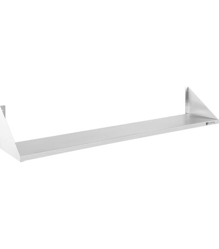 The RCTR-150 shelf from Royal Catering offers practical and simple storage space, suitable for all kitchen utensils, which could be stored upon a 30 x 150 cm shelf. The shelf is made of easy to clean, stable stainless steel, which provides a high load bearing capacity. The structure of the shelf is as simple as it is practical, since the shelf consists of only three parts. The two oblique sides are mounted on the wall with the aid of the included screws. The shelf is then attached, with a reliable strut which runs underneath, which allows for and makes sure, that load are carried without problem. Therefore all placed objects can be safely placed on the shelf without problem or concern. The shelf can be attached to any wall and thanks to the mounting, is space-saving, thus ensuring further kitchen furniture and work surfaces have space within the room. This shelf will prove to be very practical, reliable and always be ready for use. A further advantage is offered by the robust material used, is that it can be quickly and easily cleaned. The simple, modern design of this shelf means that it will find a place and fit comfortably in any kitchen or laboratory facility. ...