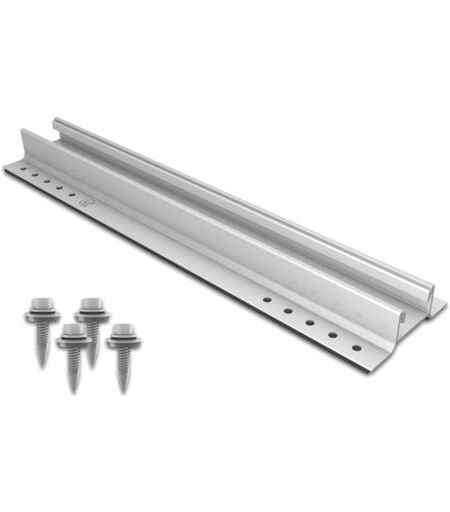 K2 montasjemateriell for SolcellerKort skinne for montering av solcellemoduler på trapesformede metallplater, inkl. fire selvgjenge skruer med pakning. Vi er etter Forskrift om elektrisk utstyr § 21 pliktig til å informere våre forbrukere at installasjonsmateriell ment for å kunne inngå i et fast elektrisk anlegg kan kun installeres av en registrert installasjonsvirksomhet. Unntatt er elektrisk materiell som utelukkende er ment for bruk i faste teleinstallasjoner, og elektrisk materiell som forbruker selv lovlig kan installere. ...