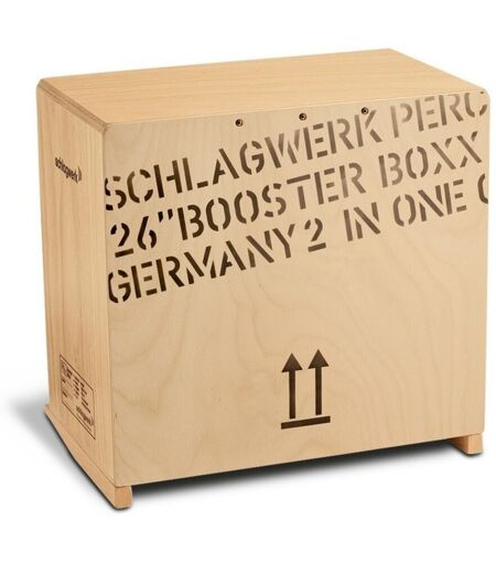Schlagwerk Booster-Boxx lager en fantastisk bastrommelyd på scene. Den integrerte snare tverrstangen bidrar til å skape en helt realistisk lyd (karakteristiske vibrerende snare ledninger). Frekvensområdet ligger like over "normale" basstrommer og tilbyr et imponerende interessant og selvsikkert alternativ. Den solide voluminøse bassbasen kombinert med den følsomme snare at begge modellene gir ren akustisk kraft. Bjørk kroppen gir god holdbarhet og resonans med en tone som skjærer gjennom miksen i en live situasjon. Bøketre -overflaten reagerer på de letteste berøringene og gir en god håndfølelse. ...