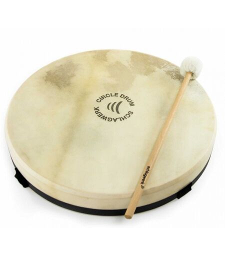 Schlagwerk Sirkeltromme 40 cm / 155 er perfekt for trommesirkler og solospill. Denne lettspillte rammetrommen har et robust naturlig geiteskinn som gir en varm og fyldig lyd. Den ekstremt lette konstruksjonen gjør den ideell for vedvarende enhåndsspill noe som sikrer komfort og enkelhet under lange økter. Rammen i bøketre med flere lag gir god holdbarhet mens den medfølgende beltebraketten sørger for sikker håndtering. Denne trommen har førsteklasses lydkvalitet og pålitelig ytelse for både erfarne trommeslagere og nybegynnere. I tillegg leveres den med en klubbe klar til umiddelbar bruk. ...
