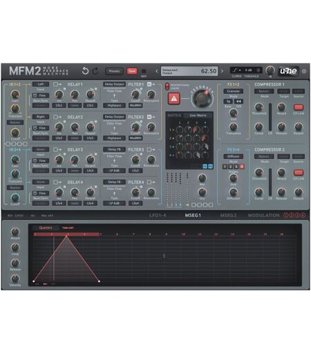 u-he MFM2 Delay Heaven er en kraftig semi-modulær delay plug-in som er ideell for eksperimentell lyddesign. MFM2 Delay Heaven er i stand til å produsere alt fra subtile teksturer til stor granulær atmosfære og lar produsenter ingeniører eller lyddesignere utforske grensene for hva tradisjonelle delay plug-ins kan oppnå. Bygget rundt en engine med fire samtidige multi-modus delay hver med uavhengige kontroller for panorering og utgangsnivå kan du gjøre ting som ikke er mulig med tradisjonelle forsinkelser. Hver delay sendes inn i delay som tilbyr seks forhåndslagde konfigurasjoner for ruting sammen med brukerdefinerte rutingmuligheter. Sammen med en rekke kreative effekter modulasjonsmuligheter og komprimering lar MFM2 deg krysse alt fra klassiske delays enorme reverbs forvrengte delays glitch-effekter endeløse looper eller en hvilken som helst kombinasjon av de ovennevnte. Presentert i et nydesignet grensesnitt er det enkelt å navigere i MFM2 Delay Heaven. Godt merket innganger og utganger viser signalflyten din og gir en visuell representasjon av delay din. Selv om u-he MFM2 Delay Heaven er ekstremt brukervennlig skulle du noen gang oppleve at du mangler inspirasjon eller sliter med å oppnå lyden du leter etter er over 400+ profesjonelt utformede forhåndsinnstillinger tilgjengelig for å hjelpe deg å realisere ditt kreative potensiale. . Vennligst merk: Dette produktet kommer i form av en digital nedlastingskode som sendes til din e-post for aktivering. ...