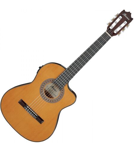 Den klassiske gitaren Ibanez GA5TCE3Q-AM er et bevis på varemerkets satsing på kvalitet og rimelig pris. Dette instrumentet er laget for å dekke behovene til både nybegynnere og viderekomne gitarister. Den open pore natural finishen gir den ikke bare en fantastisk organisk estetikk men lar også treets tonekvalitet skinne gjennom. Gitaren har en Thinline Cutaway Classical-kropp med vekt på praktisk bruk og komfort sammen med en slank Okoume-hals og er designet spesielt for dem som prioriterer spillevennlighet uten å gå på kompromiss med lyden. GA5TCE3Q-AM er utstyrt med Ibanez Undersaddle-pickup og AEQ-2T-preamp med innebygd tuner og er klar til å levere varme fyldige toner og lys lyd i alle omgivelser enten det er i et stille hjemmemiljø eller på en livlig scene. Kombinasjonen av Sapele-topp -bunn og -sider sammen med gribebrett og -bro i Purpleheart gir musikere en fyldig og rik klangkarakter. Denne gitaren er ikke bare et instrument men et stykke håndverk som skiller seg ut med sin robuste byggekvalitet og vakre enkle design. ...