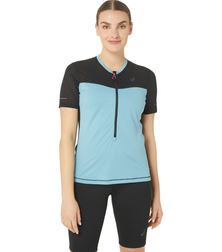 Asics Women's Fujitrail Short Sleeve Top Performance Black/Gris Blue L