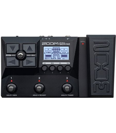 Zoom G2X Four Gitar Multi-Effects-prosessoren bruker banebrytende forsterkermodellering og IR-teknologi for å levere flere tonevariasjoner enn noen gang før. G2X Four har en innebygd uttrykkspedal for å skape allsidig artikulasjon. Fullpakket med over 100 effekter og 250 forhåndsinnstillinger har den alt fra tradisjonelle toner til nye og innovative effekter. Du kan til og med lage dine egne forhåndsinnstillinger ved å legge opptil syv effekter i lag og lagre dem direkte i det innebygde minnet. Kombiner elementer av gammelt og nytt med Zooms nye Multi-Layer IR-teknologi som lar deg låne den "store scene"-lyden i alle miljøer. Ved å bruke Multi-Layer IR-teknologien har Zoom trofast gjenskapt ikoniske kabinetter med tre forskjellige volumer for avansert artikulasjon basert på volumet på gitaren din. G2X Four strekker seg helt tilbake til 50-tallet og frem til moderne toner og kabinetter og gir deg hver tone du noensinne vil trenge. Du kan også lage fengslende liveopptredener og lagdelte sekvenser ved å bruke den 80 sekunders innebygde looperen - perfekt for låtskrivere. G2X Four har også en innebygd rytmemaskin med 68 varierte beats fra metall til blues. Koble G2X Four til datamaskinen eller smarttelefonen via USB-porten for å bruke multieffektprosessoren som et lydgrensesnitt. Du kan også redigere parametere og bruke krysstastnavigasjonsbryterne ved hjelp av føttene. ...