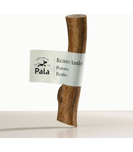 Pala Reindeer Horn – Naturlig tyggebein for hunder Pala Reindeer Horn er et unikt tyggebein for hunder som består av 100 % naturlig reinhorn. Reindeer Horn er et naturlig og sunt tyggeprodukt som passer for alle hunderaser og aldre. Det er i tillegg fri for tilsetningsstoffer, konserveringsmidler og andre kjemikalier. Reinhorn – tyggebein som holder lenge Pala Reindeer Horn er et tyggebein som varer lenge. Hornet er hardere enn andre tyggebein og kan derfor holde hunden din sysselsatt i flere timer. Dette er derfor et perfekt tyggebein for glupske hunder. Tyggingen på hornet bidrar også til å fjerne plakk og tannstein fra hundens tenner. Dette reduserer risikoen for tannproblemer og forbedrer dermed munnhygienen. Pala Reindeer Horn – sammendrag Pala Reindeer horn er hardere enn andre tyggebein og kan bidra til å redusere stress og kjedsomhet. Ved å tygge på hornet kan hunden få hjelp til å rense tennene fra plakk og tannstein på en naturlig måte. Hornet er rikt på viktige mineraler og næringsstoffer som kan hjelpe til med å fremme en sunn hud, pels og leddhelse hos hunden Tilgjengelig i tre størrelser: S, M, L ...