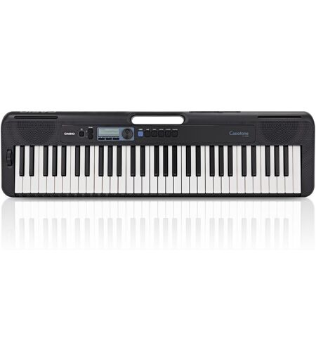 Bær keyboardet ditt i én hånd. Casio CT S300 er revolusjonerende med et håndtak som en del av formen. Med en vekt på bare 33 kg er det enkelt å holde keyboardet ved siden av deg. Med batteridrift kan du øve i opptil 19 timer uten å måtte være koblet til veggen. Ta med deg musikken på veien. Skap din egen unike stil. Det berøringsfølsomme klaviaturet med 61 tangenter har 400 morsomme og spennende toner og 60 sanger som du kan utforske. CT S300 er perfekt for både skole- og hjemmebruk og er ideelt for å lære seg det grunnleggende ved å spille keyboard. Med Casio Music Space-appen kan du koble til smarttelefonen eller nettbrettet ditt for å få tilgang til alle de morsomme pedagogiske funksjonene som appen har å tilby. ...