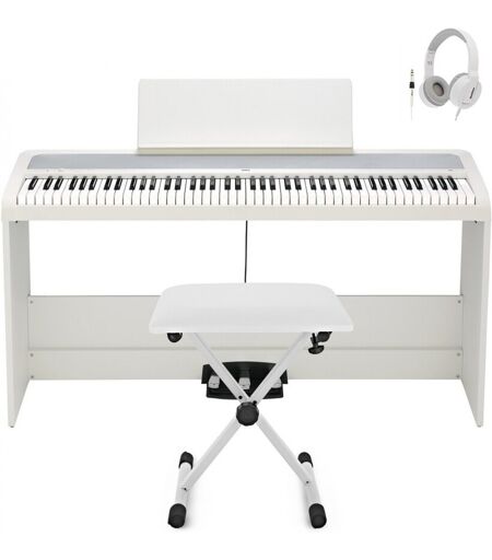 Korg B2SP digitalpiano-pakken er en flott måte å skape ditt ideelle B2SP-oppsett på. Det er ideelt for ulike spilleferdigheter og er en del av den nye generasjonen Korg pianoer. Med Natural Weighted Hammer Action (NH)-klaviaturet har det aldri føltes så naturlig å spille på et digitalpiano. Korg B2SP har alle de fantastiske funksjonene til B2 men har i tillegg en treramme og en trippel pedalenhet. Det tilhørende stativet er enkelt å montere slik at du kan konsentrere deg om å spille. Den tredobbelte pedalenheten festes enkelt til stativet og gir deg alt du trenger for å kunne spille piano for alvor. B2SP inkluderer også en programvarepakke for bedre undervisning og kreativitet med en tremåneders premium prøveversjon av Skoove. Gjør deg klar til å forbedre dine pianoferdigheter med Korg B2SP og den komplette pakken. Merk: Det avbildede bildet er kun representativt for pakken og variasjoner kan forekomme avhengig av hvilke alternativer du velger. ...