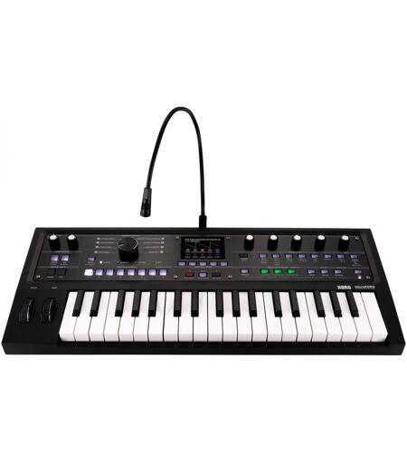Korg Microkorg 2 bygger videre på den originale designen til en av markedets mest ikoniske synther med en rekke forbedringer og tilleggsfunksjoner som den nye vokalprosessoren og en skarp 28-tommers fargeskjerm. Microkorg 2 er bygget opp rundt en analog modelleringssyntese-lyd engine og gir et rikt lydbilde med en ny "programvelger" som gjør at du raskt kan bytte mellom sjangerbaserte lydbanker. I tillegg har Microkorg 2 en integrert loop-opptaker for fremføringer på live og en rekke effekter i studiokvalitet for å forme lyden din. Denne limited edition -versjonen har en svart metallic-finish og et mykt etui for transport av synthen. Microkorg 2 er utstyrt med et 37-toners tangentbord og har en kompakt design som gjør den enkel å transportere - perfekt for scene eller studioet. Et av de mest unike aspektene ved Microkorg 2 er den medfølgende svanehals-mikrofonen som i kombinasjon med den helt nye vokalprosessoren gjør det mulig å legge vokalen i lag vocode den og mye mer. Microkorg 2 har gått fra originalens vintage-design til en moderne estetikk med et levende fargedisplay som gjør det enkelt å navigere mellom lyder og innstillinger. Microkorg 2 er lett og bærbar og kan drives med 6 x AA-batterier eller en strømadapter for ekstra allsidighet. Den har også en rekke tilkoblingsmuligheter inkludert USB-C MIDI I/O og til og med en spjeld-/bryterkontakt. Den raffinerte designen skaper en perfekt balanse mellom analog lyd og banebrytende teknologi og fargedisplayet gir umiddelbar visuell tilbakemelding. ...