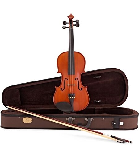 Designet for studenten på nybegynnernivå. Stentor Student Standard Fiolinpakke er i 3/4 størrelse og skåret fra solide tonetrær med innlagt dekorasjonskant og svartnet løvtre-plugger og gripebrett. Denne fela et ideelt valg for nybegynnere og med integrerte finstemmere er den lett å justere. Alle komponentene er av en høy standard helt ned til strengene og broen. Dette er i motsetning til mange andre lommebokvennlige feler som gjerne bruker sammensatt tre eller laminat-topper i kroppen. Med denne fiolinpakken får du mye for pengene og det følger med både en lett bærekoffert og en trebue med frosch i ibenholdt perfekt for nybegynnere på farten. ...