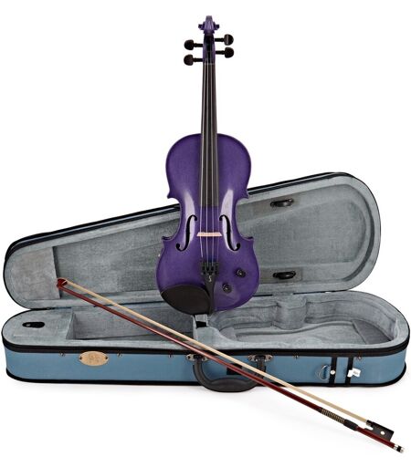 En kombinasjon av det tradisjonelle og det moderne. Stentor Harlequin elektrisk fiolin i lilla er i full størrelse og har en Artec Piezo pickup med toneknott og volumkontroll for å justere mengde respons fra instrumentet. Jack-kontakten gir den ekstra bonusen at du kan koble fiolinen din til en hvilken som helst forsterker eller et PA-system. Stentor mener du ikke trenger ofre kvalitet for design. Harlequin er utstyrt med en bro av god kvalitet og strengeholder med integrerte finstemmere og er designet for å tåle hverdagslivet til en musikkstudent. Denne modellen er ideell for musikere som holder konserter og leveres komplett med en lett koffert for maksimal beskyttelse under reisen. Også inkludert er en slitesterk P&H; glassfiberbue slik at du kan begynne å øve med en gang. Merk: Kan leveres med en naturfarget bue avhengig av tilgjengelighet. ...