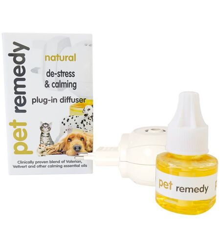 Pet Remedy Duftspray & Flaske – Beroligende duftløsning for urolige dyr! Dette er en naturlig og beroligende duftløsning, spesielt utviklet for å berolige stressede og urolige dyr. Duftløsningen inneholder en unik blanding av valeriana, vetivert og andre eteriske oljer. Slik bruker du Pet Remedy: Ta av lokket på flasken og skru flasken skikkelig godt fast i duftsprayen Velg et strømuttak som ligger så nært gulvet som mulig La produktet virke 4–6 uker om gangen Pet Remedy dekker et område på opptil 60 m². Hvordan fungerer Pet Remedy? Duftsprayen bidrar til å berolige nervøse eller stressede dyr ved å påvirke naturlige neurotransmittere i hjernen. Sprayen benytter seg av en oljeblanding som etterligner GABA (gamma-aminosmørsyre), som er en naturlig beroligende neurotransmitter, for å hjelpe til med å berolige nerver. Pet Remedy passer for alle slags stressede kjæledyr, som hunder, katter, gnagere, fugler og hester. Hvis kjæledyret ditt viser tegn på stress, som endret adferd, økt markering av revir eller det nekter å spise, anbefaler vi at du kontakter en veterinær eller etolog. Stress kan utløses av ulike faktorer, inkludert forandringer i hjemmet (nytt kjæledyr, flytting, tap av venn), høye lyder og fyrverkerier, reiser eller besøk hos veterinæren. Pet Remedy fungerer på en lignende måte som produkter som Feliway og Adaptil, men er drøyere i bruk. Les og følg bruksanvisningen nøye før bruk. Naturlig beroligende duftløsning Tilpasset for stressede kjæledyr Dekker 60 m² ...