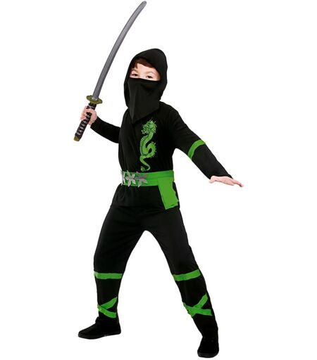 Wicked Costumes Ltd Power Ninja, Grønn / Sort, 8-10 år