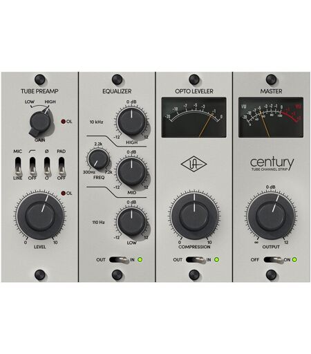 Universal Audio Century Tube Channel Strip er en spesialdesignet kanalstripe som består av en vintage rørpreamp optisk kompressor og trebånds EQ. Century Tube Channel Strip har en strømlinjeformet arbeidsflyt som gjør at du kan fange den perfekte stemningen på første forsøk. Enten du jobber med vokal gitarer trommer eller andre instrumenter gir denne plug-in-en et bredt spekter av klanger fra subtile til svært mettede. Century Tube Channel Strip kan også integreres sømløst med Apollo grensesnitt ved hjelp av Unison-teknologien. Det betyr at du kan styre gain staging og impedans direkte fra grensesnittet noe som gir deg full kontroll over lyden. I tillegg gjør den modulære utformingen av denne plugin-modulen at du kan velge hvilke deler av kanalstripen du vil bruke til prosessering. En av de mest fremtredende funksjonene i Century Tube Channel Strip er den svært musikalske trebånds EQ-en. Med denne EQ-en kan du få frem det beste i et hvilket som helst instrument slik at du kan forme lyden med presisjon. Plugin-modulen eliminerer dessuten kompresjonens gjettverk med én enkelt kompresjonsknapp. Dette gjør det enkelt å tilføre energi til bassen lim til trommene og til og med struktur til vokalen. Merk: Dette produktet leveres i form av en digital nedlastingskode som sendes til din e-post for aktivering. ...