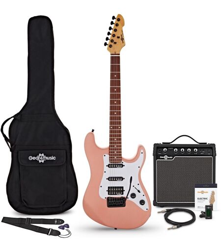 Gear4Music LA Select Modern Elektrisk Gitar Rosa 15W Gitarforsterker & Tilbehørspakke