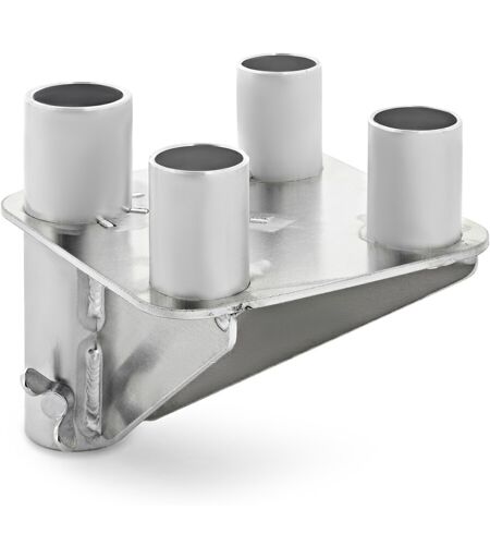 G4M Pro Stage 4-Way Leg Saver er ideell for alle som bygger mobile sceneoppsett og som ønsker å effektivisere bruken av ben og hjul uten å ofre stabiliteten. Den lar deg støtte fire scenedekk ved hjelp av ett enkelt ben i ytterkanten noe som reduserer det totale antallet ben og hjul som trengs perfekt for å spare vekt og oppsetttid. Den er laget av aluminium og er lett men likevel sterk med en maksimal belastning på 250 kg. Den er designet for å passe til de samme benstørrelsene som brukes på G4M Pro-scenedekkene slik at høyden forblir jevn over hele plattformen. Dette gjør den spesielt nyttig for konfigurasjoner med rullende stigerør der effektivitet og jevne overflater er avgjørende. ...