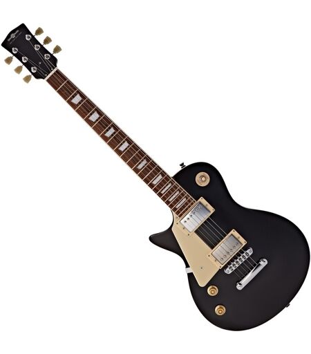 Den svarte venstrehånds New Jersey Select-elgitaren gir enestående følelse allsidige toner og et overbevisende retro-utseende. Denne elgitaren i full størrelse gir en ultrakomfortabel spilleopplevelse som er ideell for gitarister i startfasen eller de som ønsker å utvide en eksisterende samling. Alle New Jersey-gitarer leveres klare til å spille rett fra esken og er som standard allerede oppstrengt og satt opp så alt som kreves er en rask oppjustering! Den svarte New Jersey select-gitaren er laget med en hals i blank lønn en kropp i lett poppel og et gripebrett i laurbær og er en spillervennlig plattform for å begynne din gitarreise. Med to humbucker pickuper og en treveis bryter er New Jersey-gitaren for venstrehendte utrolig allsidig slik at du kan eksperimentere med alle slags spillestiler. New Jersey Select byr på alt fra tunge rocketoner til moderne cleans og har noe å by på for enhver gitarist uansett erfaring alder eller påvirkning. ...